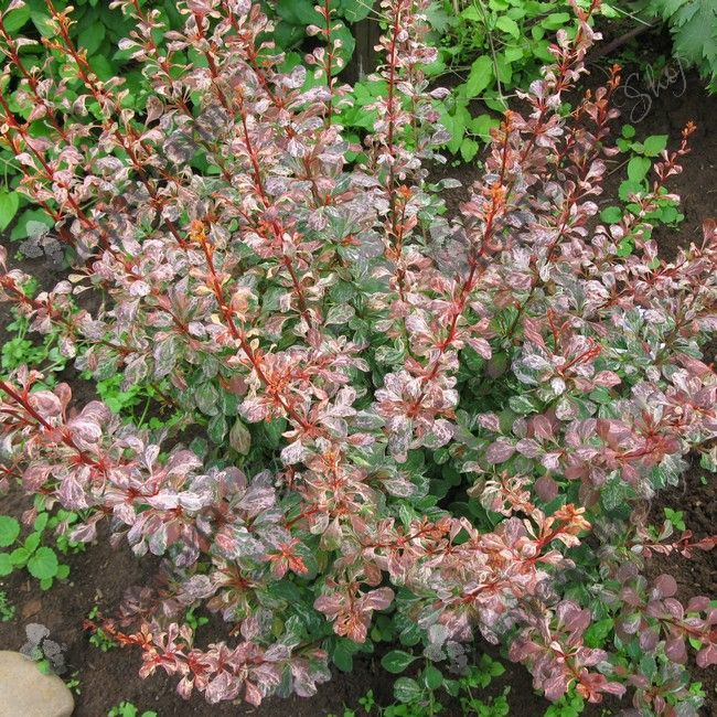 Барбарис Тунберга Наташа (Natasza) – красивый,раскидистый кустарник, с пестрой окраской. Крона густая. В высоту и ширину - 100 см. Молодые ветви растут прямо в верх, с каждым годом разветвляясь и обвисая к земле. На ветвях расположены небольшие шипы. Растение начинает обильно цвести в мае, кремового цвета цветками. Осенью созревают плоды красного цвета. Все сорта барбариса любят солнце, поэтому высаживать их рекомендуется на открытых участках с постоянным солнцем, чтобы декоративность листьев не утрачивалась. Сорт устойчив к засухе, жаре и морозам. Любит увлажненные и плодородные почвы.Сорт Наташа часто используется для формирования ярких ландшафтных композиций или для групповых посадок. Саженцы дополняют городские парки или участки вблизи усадеб. Единственное, что может губительно сказаться на состоянии растения – это застой влаги в грунте.