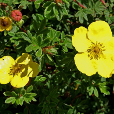 Лапчатка 'Хакманнс Гигант' (Potentilla fruticosa 'Hachmann`s Gigant') Быстрорастущий кустарник около 1 м высотой, с полусферической формой кроны. Листья зеленые пальчато-рассеченные. Ярко-жёлтые цветки, около 2–3 см в диаметре. Устойчива к вредителям и болезням. Хорошо переносит обрезку. Нуждается в периодической обрезке для поддержания интенсивного цветения и декоративной формы кроны. Цветет с июня по ноябрь непрерывно. Украсит парки, скверы, миксбордеры, в качестве живой изгороди. К почвам не требовательна. Растёт быстро. Cветолюбив, но выносит и полутень. Зимостоек. Морозостойкость -40С.