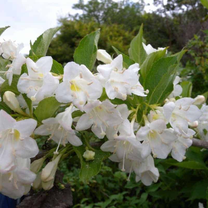 Вейгела «Бристол Сноуфлейк» — красивоцветущий кустарник, высотой и шириной до 1,5 м. Крона более вертикальная. Листья длинные, зеленые. В мае-июне куст полностью покрывается белыми крупными колокольчатыми цветками, размер которых достигает 3 см. Цветение позднее, продолжительное. В это время вейгела смотрится элегантно и одновременно трогательно. Место по возможности должно быть солнечное, защищено от ветра. Сорт склонен к повторному цветению.