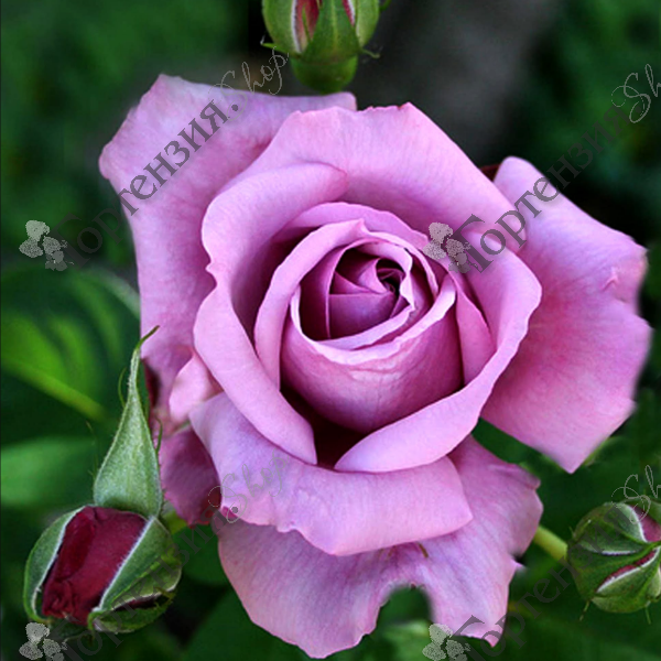 Роза чайно-гибридная Blue Moon  (или Голубая луна) -  названа так из-за оригинальной окраски лепестков бутонов – нежно-голубого цвета. Бутоны – крупные, после полного распускания цветок  в диаметре может быть до 12 см. Характерной особенностью этого сорта является изменение окраски лепестков бутонов в зависимости от места выращивания. При выращивании этого цветущего кустарника в полутени или тени окрас лепестков становится розоватым. Если же солнца на участке, где растет эта роза, достаточно, то окраска лепестков становится лиловой или голубой. Куст прямостоячий, мощный, высотой  100см, листва зеленая, глянцевая.