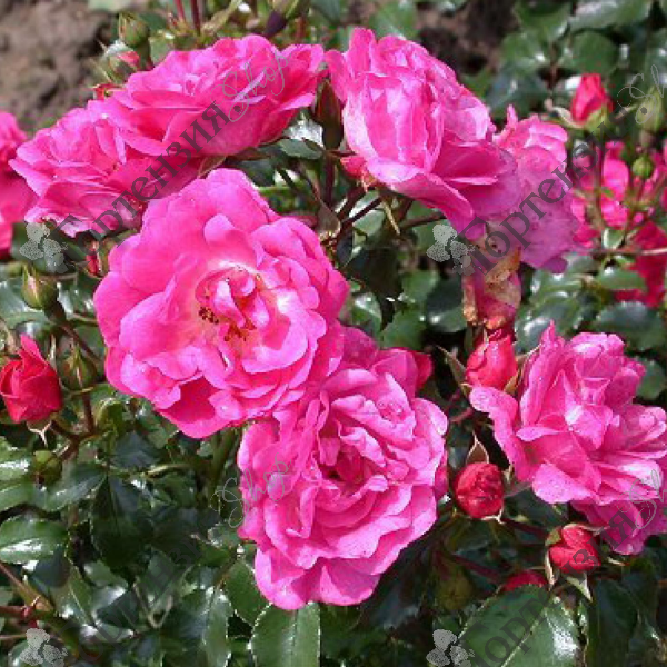 Роза миниатюрная 'Flower Carpet Heidetraum', Rosa Flower Carpet Heidetraum' - ковер из розовых  роз сорта 'Heidetraum'.Темно-розовая роза с полумахровыми цветами, собранными в большие пучки. Это идеальное садовое растение для выращивания в качестве почвопокровного растения, а также для выращивания в саду и в качестве контейнерного растения на террасе или балконе. Это прочная кустовая роза. В период цветения эта роза образует соцветия розовых цветков. Глянцевые листья темно-зеленого цвета и опадают в конце года. Пыльца привлекает пчел и бабочек. Эту розу не нужно опрыскивать, растение устойчиво к болезням, жаре, соли и дождю.