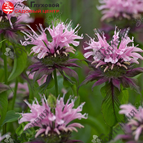 Монарда гибридная Бьюти оф Кобхэм - травянистое корневищное растение с розовыми цветками необычной формы и темно-зелеными листьями. Стебли прямые или ветвистые. Кусты источают свежий лимонно-мятный аромат, который отпугивает вредителей. Монарда (бергамот) хороша в качестве пряности.  Высота взрослого растения – 90-100 сантиметров. Морозоустойчива.